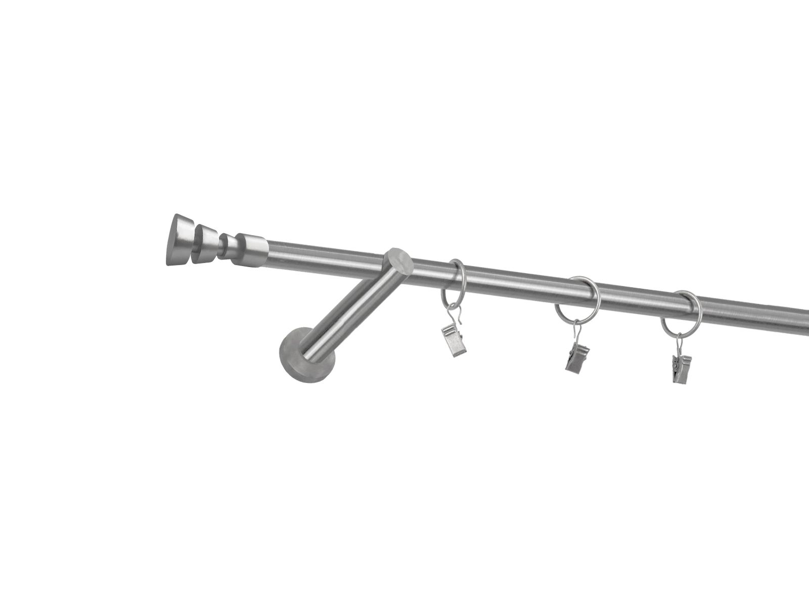 • Dĺžka 1600 mm - tyč 16mm - 1600mm - 1ks, držiak - 2ks, koncovka - 2ks, krúžok so štipcom - 15ks (pri výbere parametra príslušenstvo s krúžkami so štipcom), skrutky a hmoždinky na montáž