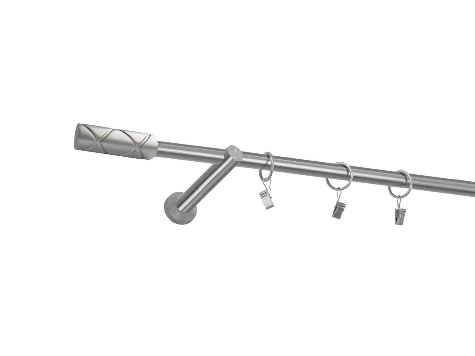 • Dĺžka 1000 mm - tyč 16mm - 1000mm - 1ks, držiak - 2ks, koncovka - 2ks, krúžok so štipcom -   9ks (pri výbere parametra príslušenstvo s krúžkami so štipcom), skrutky a hmoždinky na montáž