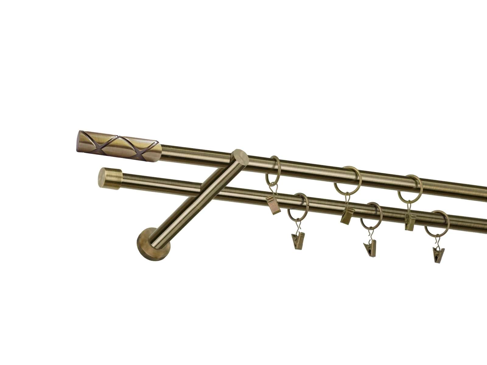 • Dĺžka 3200 mm - tyč 16mm - 1600mm - 4ks, spojka tyče – 2 ks, držiak dvojitý - 3ks, koncovka - 2ks, koncovka zadná (PULLO) - 2ks, krúžok so štipcom - 60ks (pri výbere parametra príslušenstvo s krúžkami so štipcom), skrutky a hmoždinky na montáž