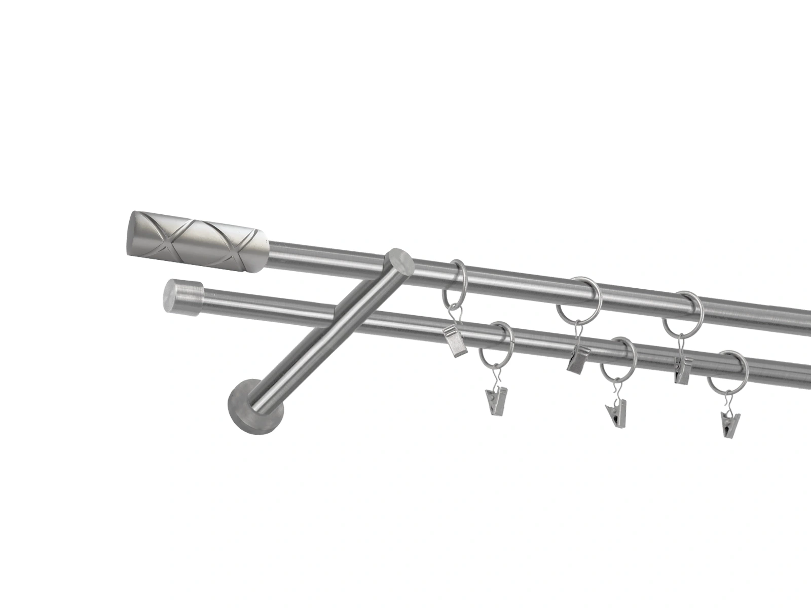 • Dĺžka 3200 mm - tyč 16mm - 1600mm - 4ks, spojka tyče – 2 ks, držiak dvojitý - 3ks, koncovka - 2ks, koncovka zadná (PULLO) - 2ks, krúžok so štipcom - 60ks (pri výbere parametra príslušenstvo s krúžkami so štipcom), skrutky a hmoždinky na montáž