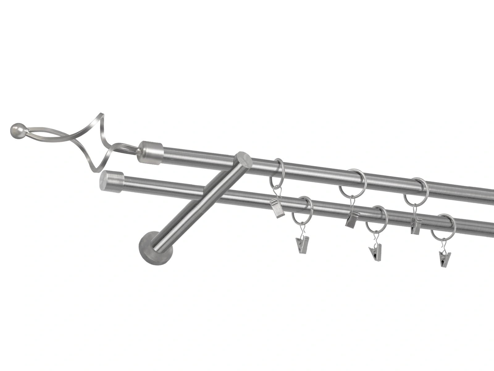 • Dĺžka 2200 mm - tyč 16mm - 2200mm - 2ks, držiak dvojitý - 2ks, koncovka - 2ks, koncovka zadná (PULLO) - 2ks, krúžok so štipcom - 42ks (pri výbere parametra príslušenstvo s krúžkami so štipcom), skrutky a hmoždinky na montáž