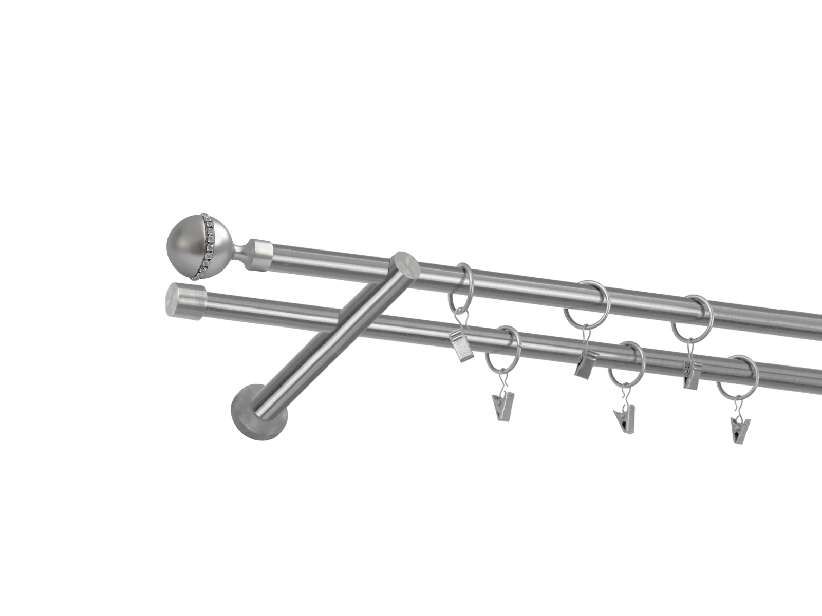 • Dĺžka 1600 mm - tyč 16mm - 1600mm - 2ks, držiak dvojitý - 2ks, koncovka - 2ks, koncovka zadná (PULLO) - 2ks, krúžok so štipcom - 30ks (pri výbere parametra príslušenstvo s krúžkami so štipcom), skrutky a hmoždinky na montáž