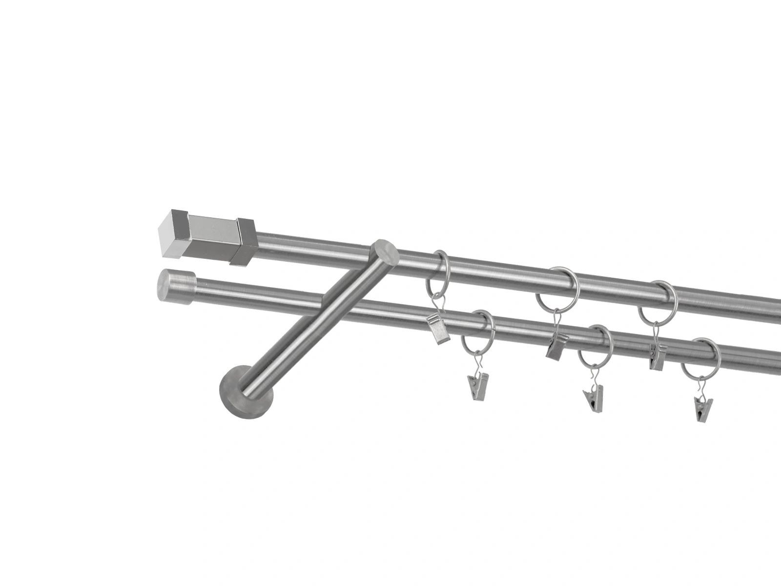 • Dĺžka 3600 mm - tyč 16mm - 1800mm - 4ks, spojka tyče – 2 ks, držiak dvojitý - 3ks, koncovka - 2ks, koncovka zadná (PULLO) - 2ks, krúžok so štipcom - 68ks (pri výbere parametra príslušenstvo s krúžkami so štipcom), skrutky a hmoždinky na montáž