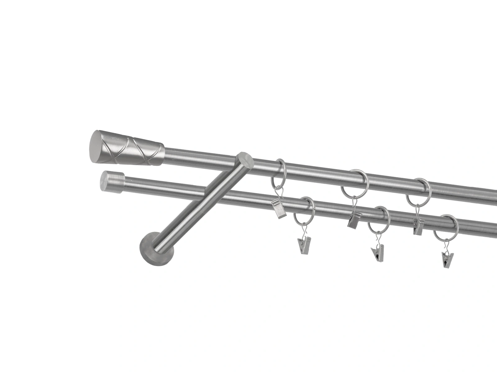 • Dĺžka 2000 mm - tyč 16mm - 2000mm - 2ks, držiak dvojitý - 2ks, koncovka - 2ks, koncovka zadná (PULLO) - 2ks, krúžok so štipcom - 38ks (pri výbere parametra príslušenstvo s krúžkami so štipcom), skrutky a hmoždinky na montáž