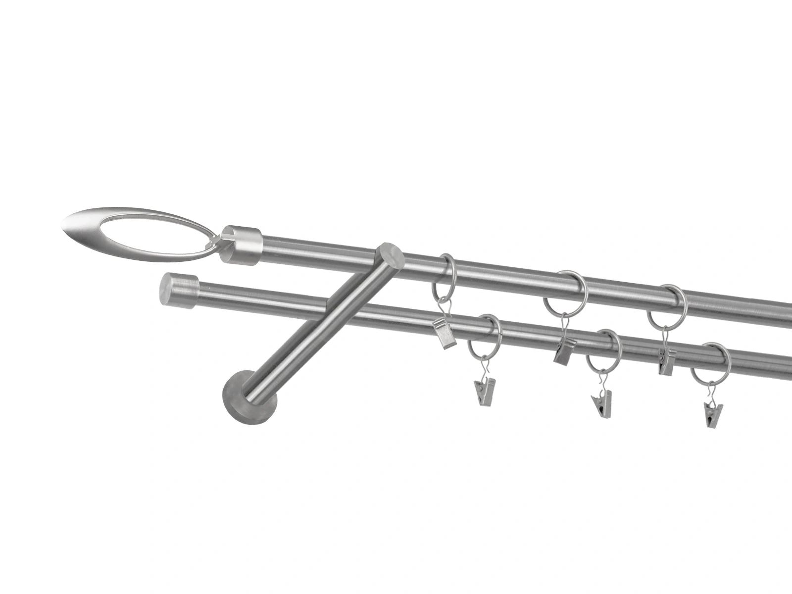 • Dĺžka 2200 mm - tyč 16mm - 2200mm - 2ks, držiak dvojitý - 2ks, koncovka - 2ks, koncovka zadná (PULLO) - 2ks, krúžok so štipcom - 42ks (pri výbere parametra príslušenstvo s krúžkami so štipcom), skrutky a hmoždinky na montáž