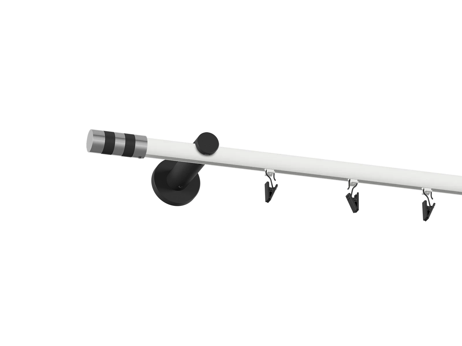 Pri prevedení bielo čiernej tyče je tyč biela a koncovky, držiaky a štipce čierne.