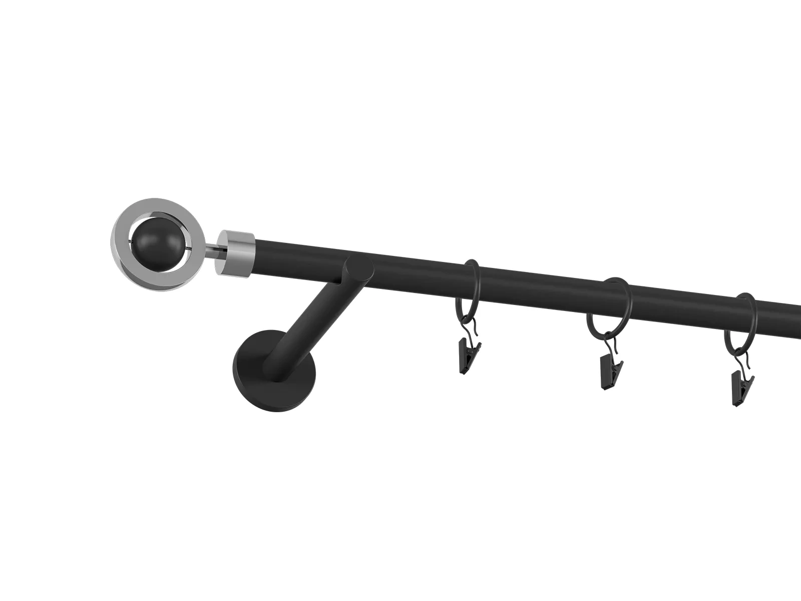 Pri tomto prevedení je tyč čierna a koncovky, držiaky a krúžky so štipcami biele.