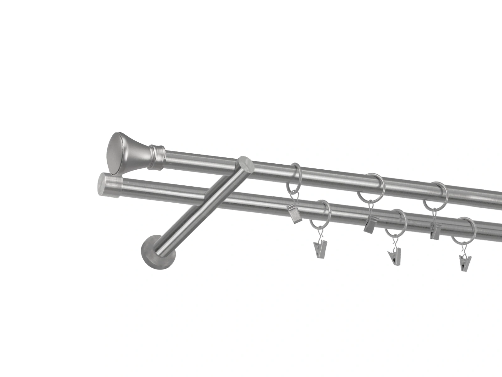 • Dĺžka 3200 mm - tyč 19mm - 1600mm - 4ks, spojka tyče – 2 ks, držiak dvojitý - 3ks, koncovka - 2ks, koncovka zadná (PULLO) -2ks, krúžok so štipcom - 60ks (pri výbere parametra príslušenstvo s krúžkami so štipcom), skrutky a hmoždinky na montáž