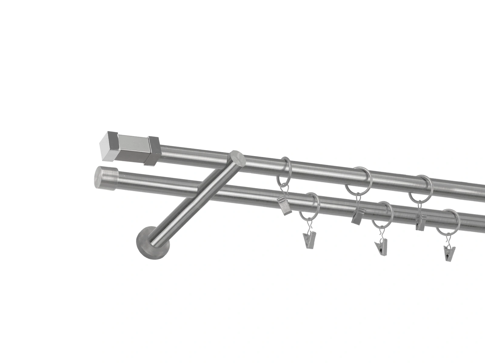 • Dĺžka 3000 mm - tyč 19mm - 3000mm - 2ks, držiak dvojitý - 3ks, koncovka - 2ks, koncovka zadná (PULLO) - 2ks, krúžok so štipcom - 56ks (pri výbere parametra príslušenstvo s krúžkami so štipcom), skrutky a hmoždinky na montáž