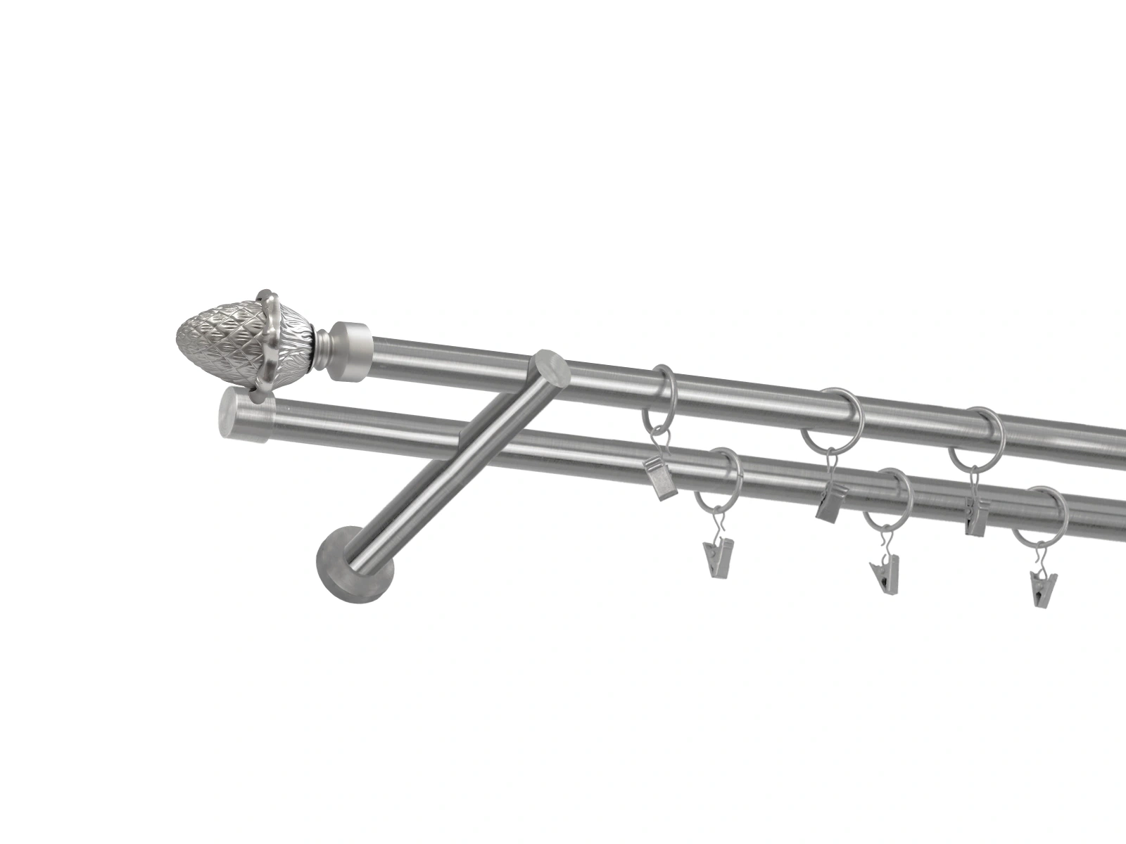 • Dĺžka 3200 mm - tyč 19mm - 1600mm - 4ks, spojka tyče – 2 ks, držiak dvojitý - 3ks, koncovka - 2ks, koncovka zadná (PULLO) -2ks, krúžok so štipcom - 60ks (pri výbere parametra príslušenstvo s krúžkami so štipcom), skrutky a hmoždinky na montáž