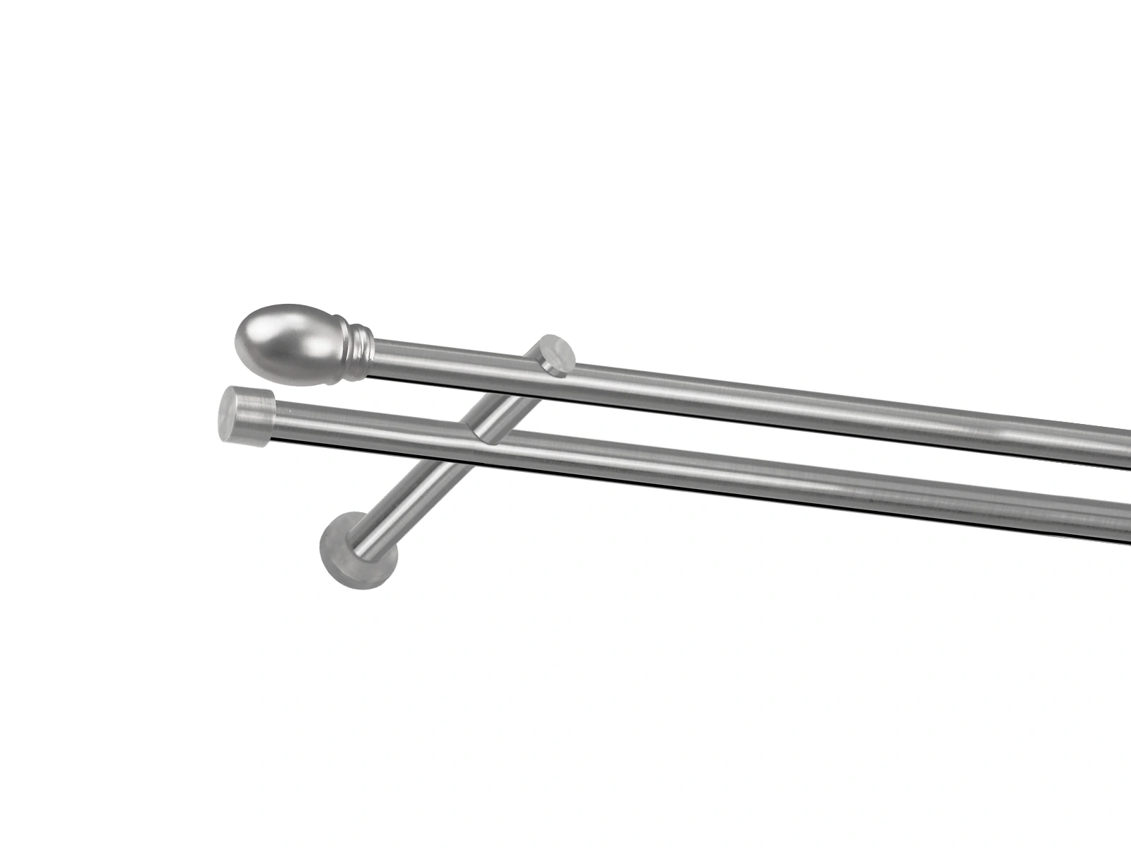 Dvojradová garniža s povrchovou úpravou - odtieň satin-nikel (matné striebro). Celokovové garniže s kvalitnou povrchovou úpravou - galvanické pokovovanie. Galvanické pokovovanie zabezpečuje vyššiu povrchovú tvrdosť, zvýšenú dolnosť voči poškriabaniu, hladký povrch. Dodávané sú v kompletoch.