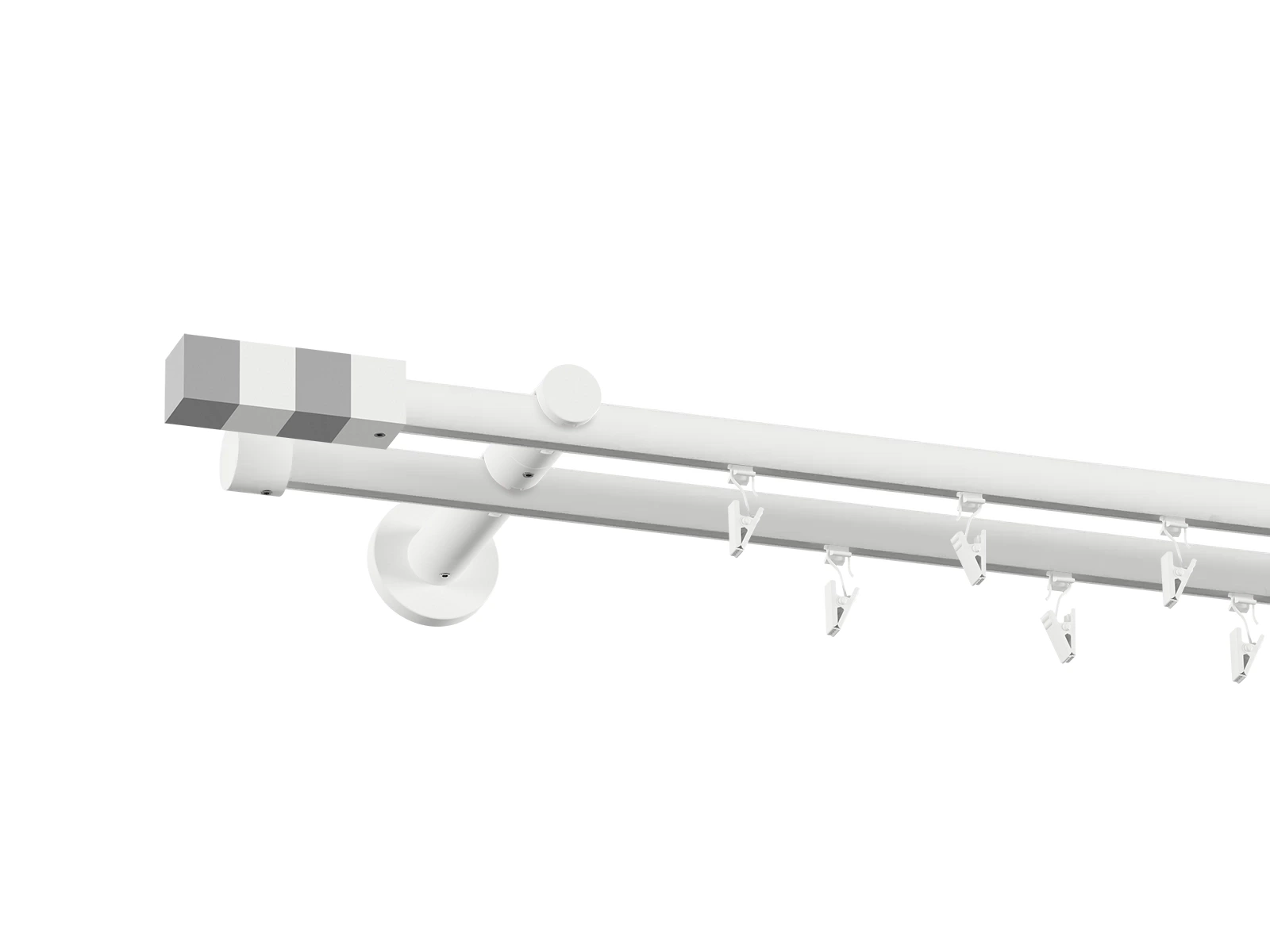 Pri prevedení bielej tyče sú tyč, koncovky, držiaky a štipce biele.