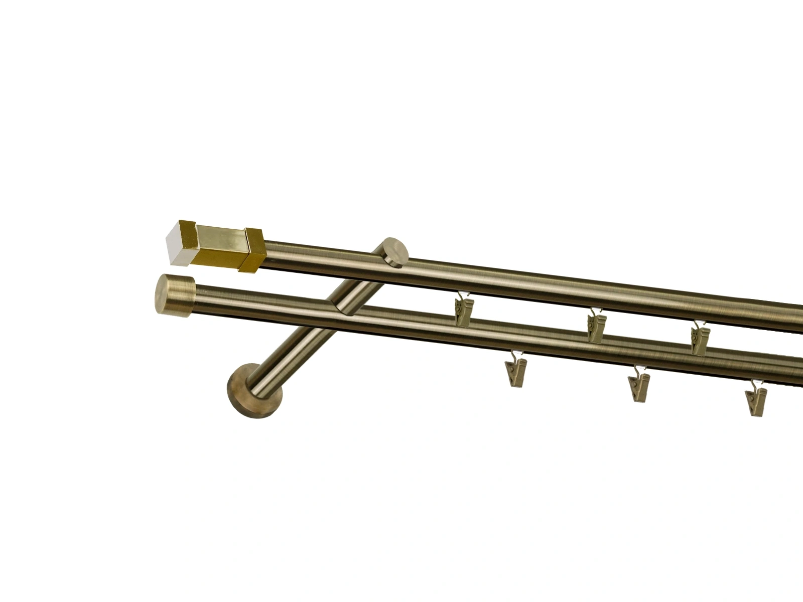 Dĺžka 1600 mm - tyč 19mm - 1600mm - 1ks, držiak - 2ks, koncovka - 2ks, krúžok so štipcom - 15ks (pri výbere parametra príslušenstvo s krúžkami so štipcom), skrutky a hmoždinky na montáž