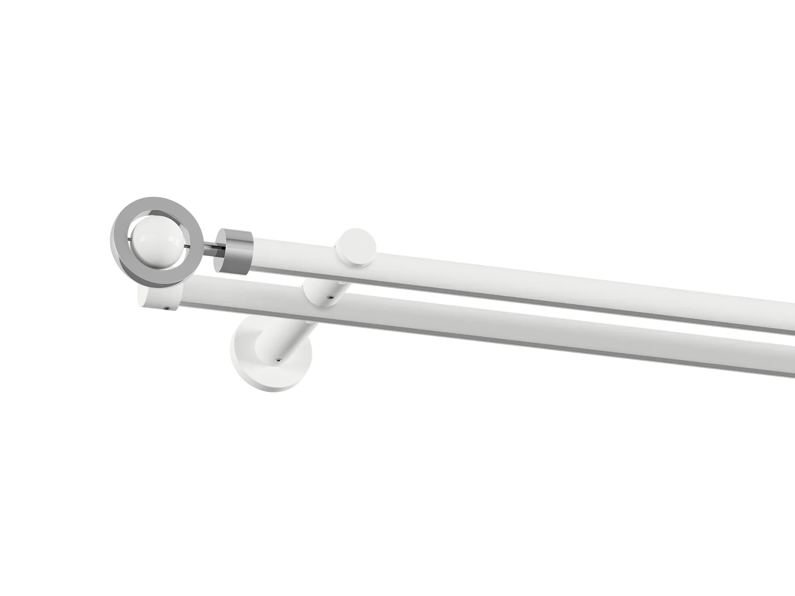 • Dĺžka 2400 mm - tyč 19mm - 2400mm - 2ks, držiak dvojitý - 2ks, koncovka - 2ks, koncovka zadná (PULLO) - 2ks, krúžok so štipcom - 46ks (pri výbere parametra príslušenstvo s krúžkami so štipcom), skrutky a hmoždinky na montáž