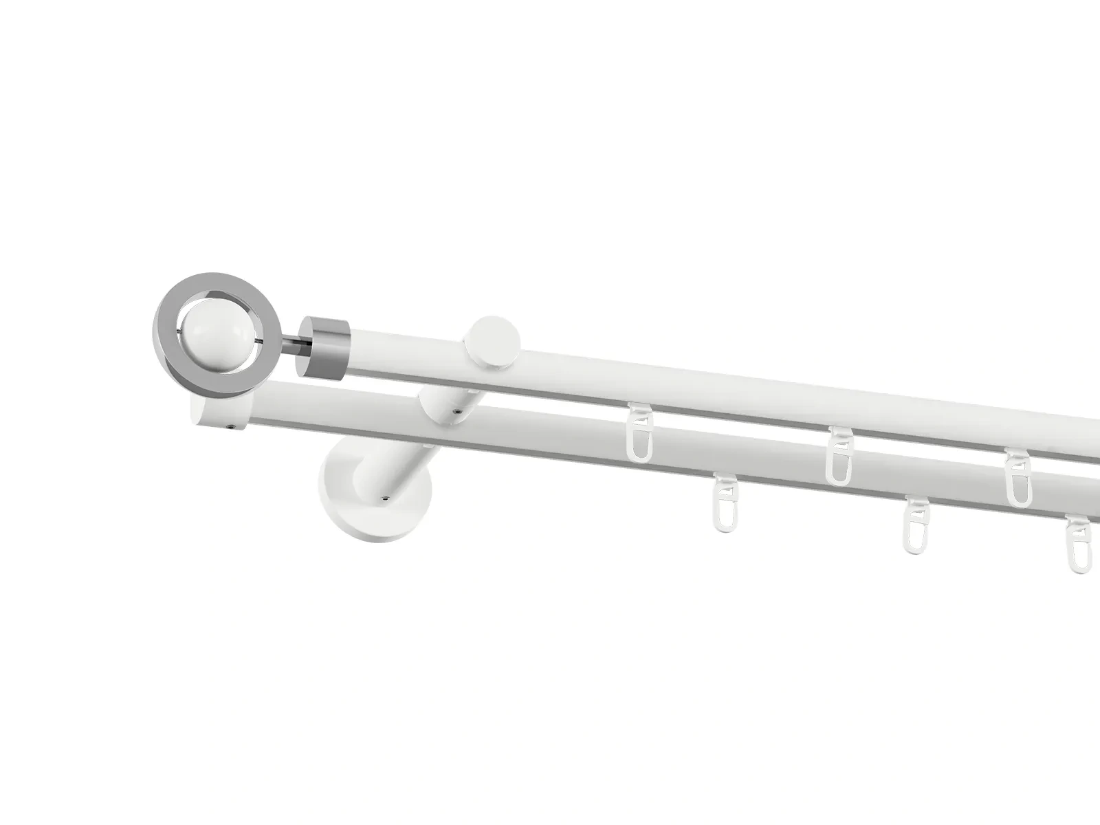 • Dĺžka 3000 mm - tyč 19mm - 3000mm - 2ks, držiak dvojitý - 3ks, koncovka - 2ks, koncovka zadná (PULLO) - 2ks, krúžok so štipcom - 56ks (pri výbere parametra príslušenstvo s krúžkami so štipcom), skrutky a hmoždinky na montáž
