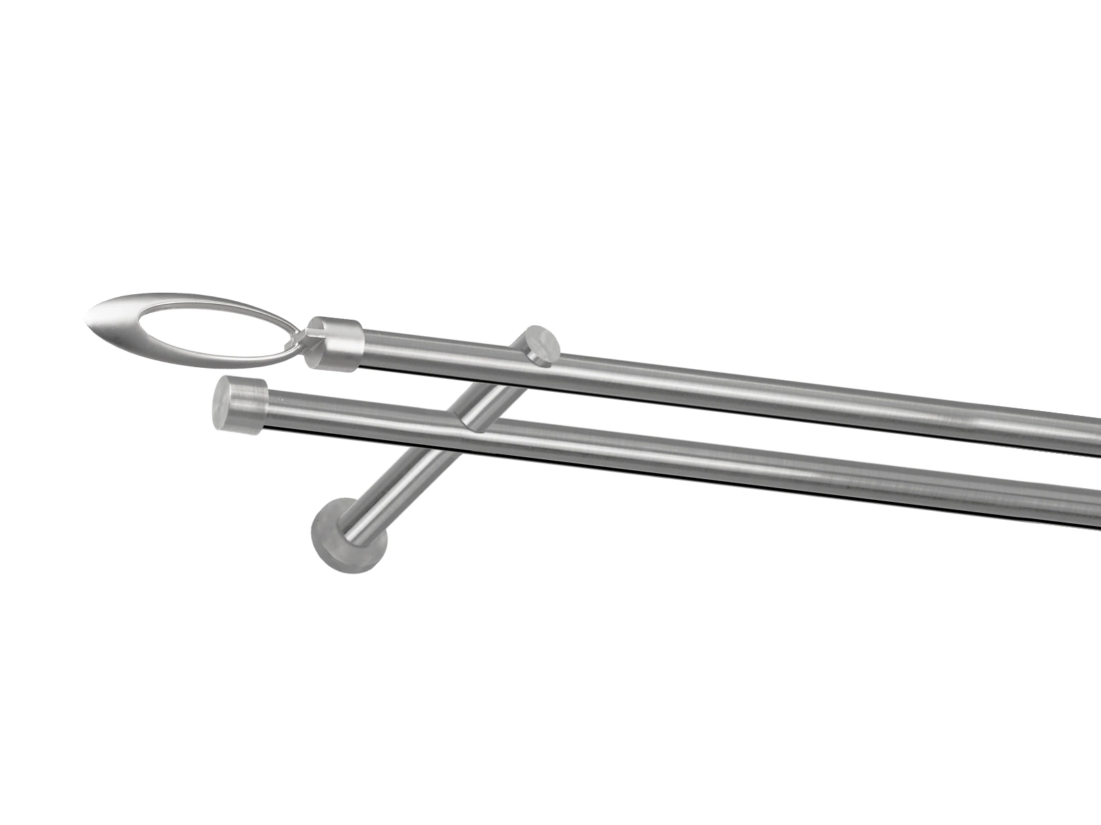 Dvojradová garniža s povrchovou úpravou - odtieň satin-nikel (matné striebro). Celokovové garniže s kvalitnou povrchovou úpravou - galvanické pokovovanie. Galvanické pokovovanie zabezpečuje vyššiu povrchovú tvrdosť, zvýšenú dolnosť voči poškriabaniu, hladký povrch. Dodávané sú v kompletoch.