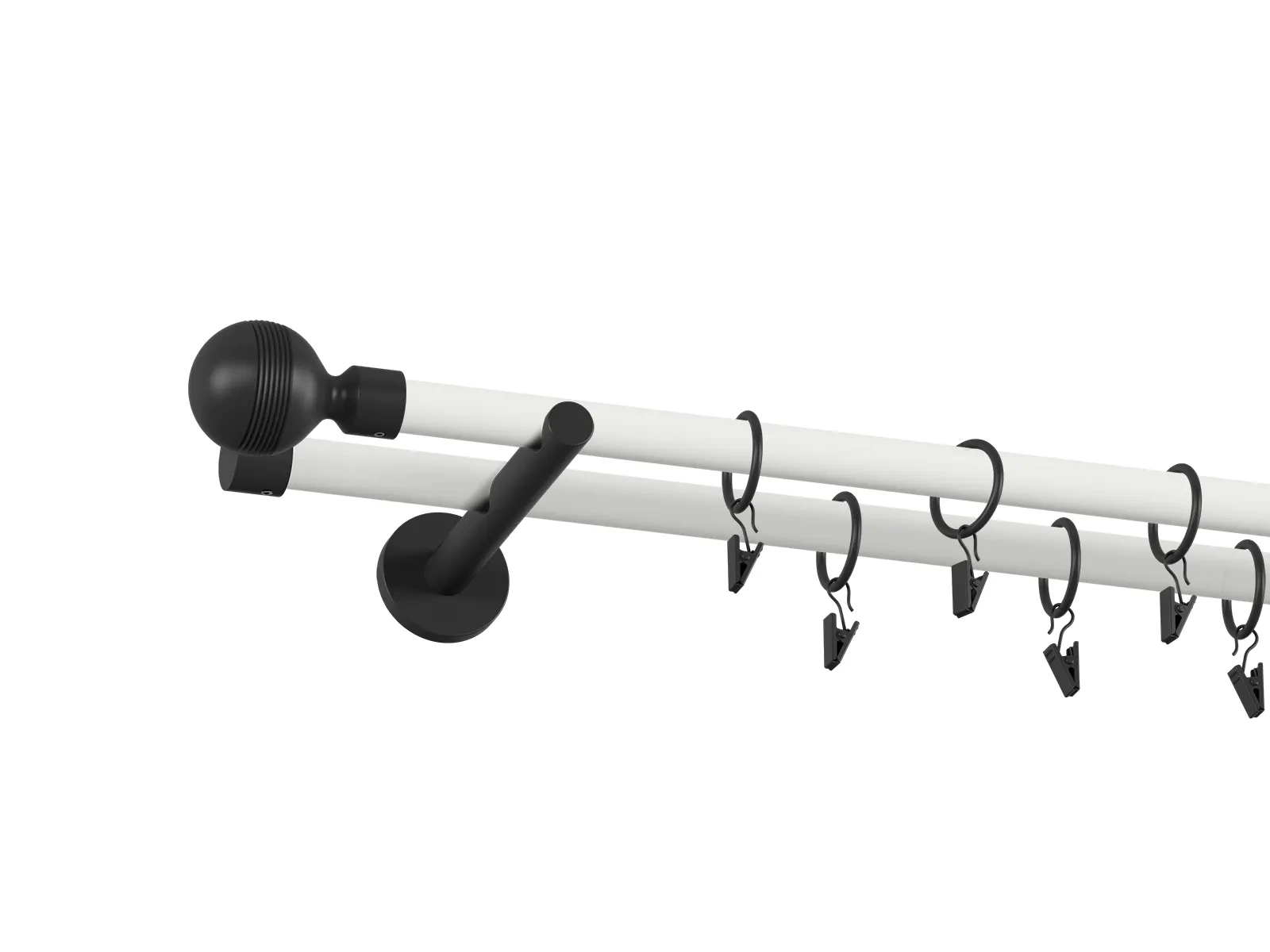 Na výber je viacero typov koncoviek a držiakov, čo umožňuje prispôsobiť garnižu presne podľa štýlu interiéru - od jednoduchých a nenápadných tvarov až po dizajnovejšie ukončenia, ktoré môžu slúžiť aj ako dekoratívny prvok. Pri prevedení bielo čiernej tyče je tyč biela a koncovky, držiaky a štipce s krúžkami čierne. Veľkou výhodou obyčajnej tyče je jej univerzálnosť. Ak máte závesy, v ktorých sú už našité kovové alebo textilné očká (krúžky), nie je potrebné dokupovať krúžky so štipcami. Záves stačí jednoducho nasunúť priamo na tyč, čo šetrí čas aj náklady a zároveň zabezpečuje čistý vzhľad.