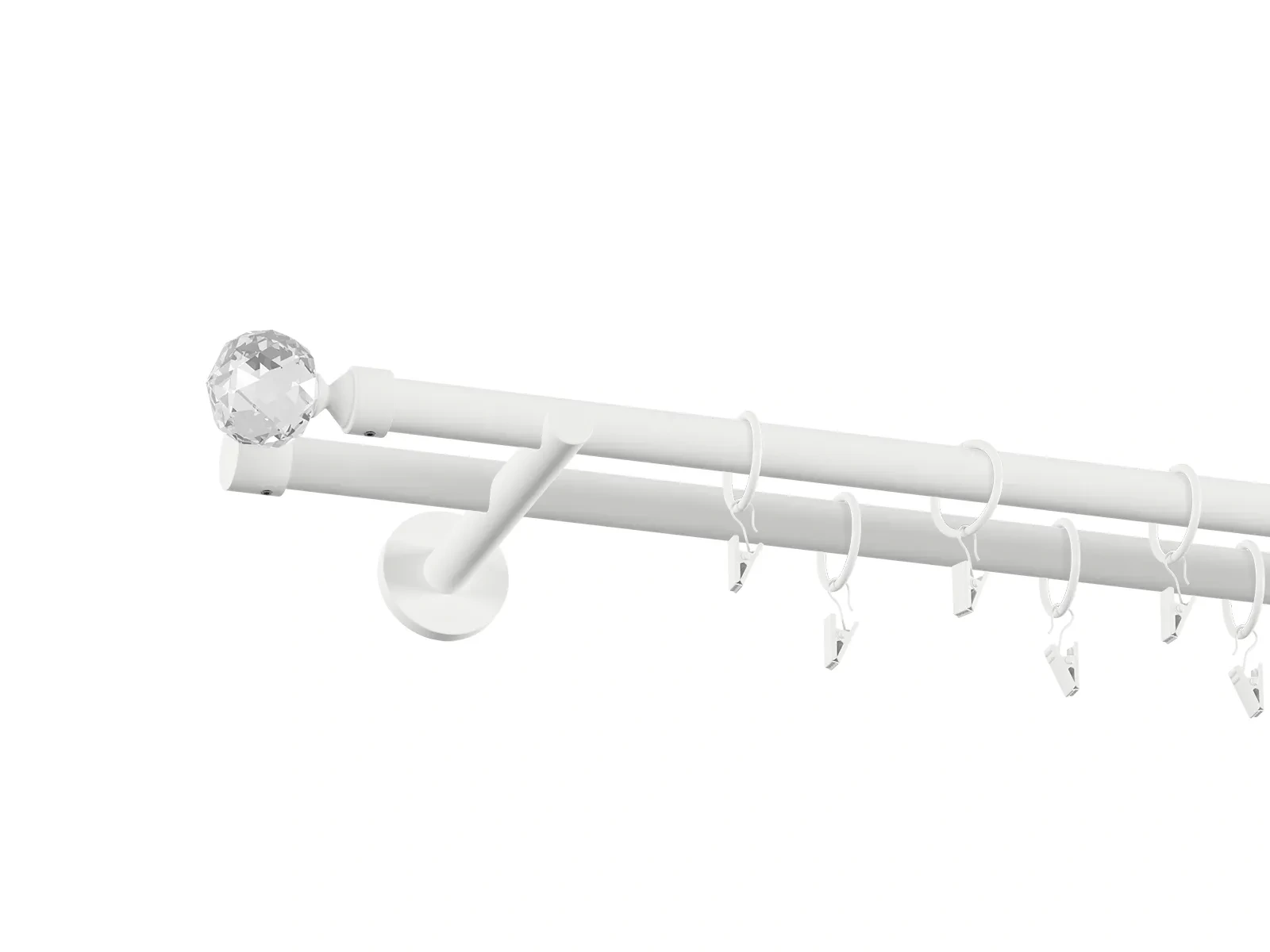 • Dĺžka 1600 mm - tyč 19mm - 1600mm - 2ks, držiak dvojitý - 2ks, koncovka - 2ks, koncovka zadná (PULLO) - 2ks, krúžok so štipcom - 30ks (pri výbere parametra príslušenstvo s krúžkami so štipcom), skrutky a hmoždinky na montáž