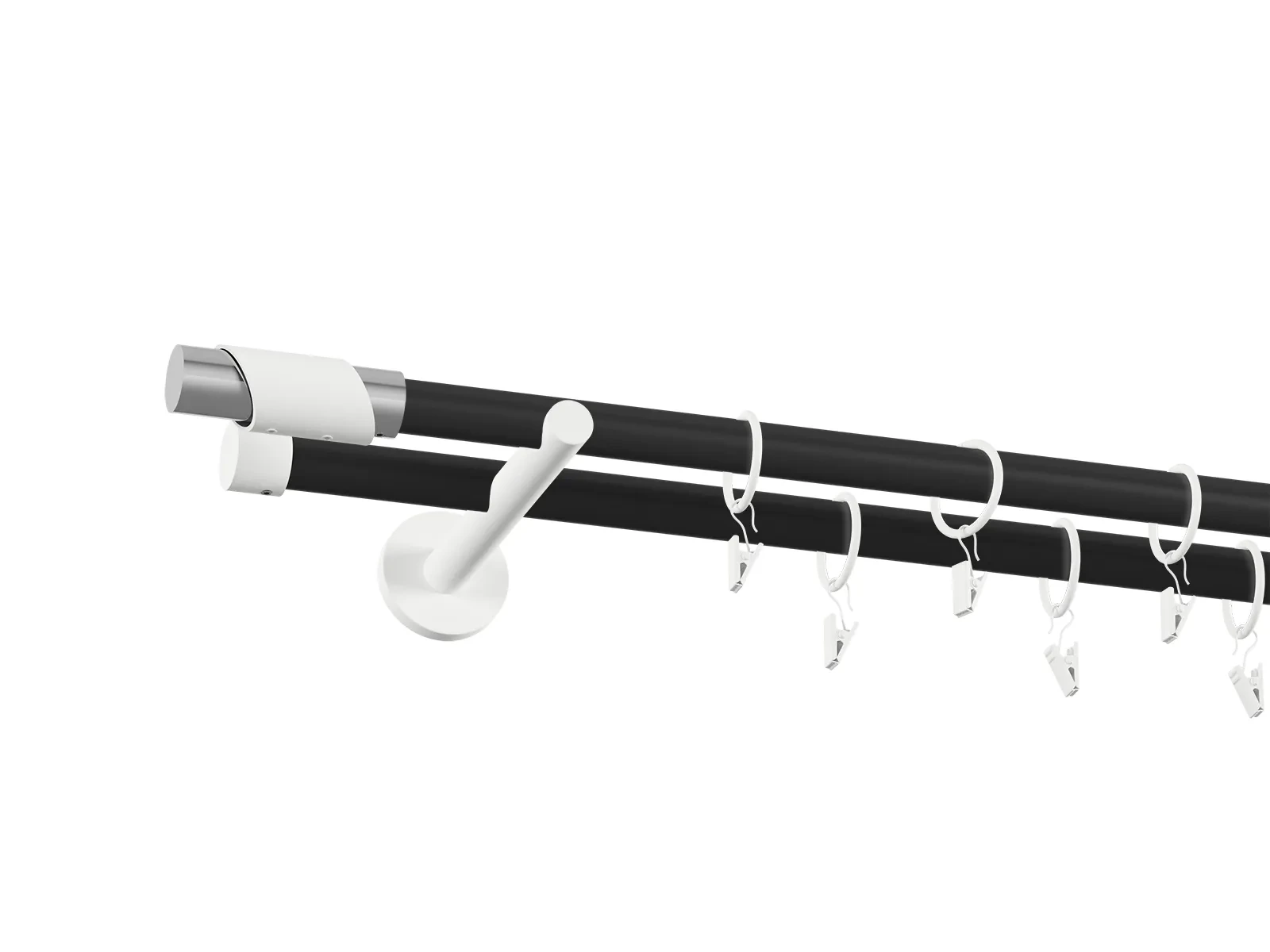 • Dĺžka 1600 mm - tyč 19mm - 1600mm - 2ks, držiak dvojitý - 2ks, koncovka - 2ks, koncovka zadná (PULLO) - 2ks, krúžok so štipcom - 30ks (pri výbere parametra príslušenstvo s krúžkami so štipcom), skrutky a hmoždinky na montáž