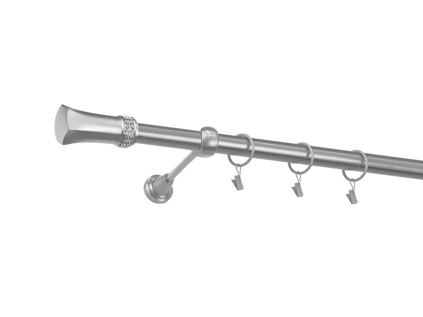 Dĺžka 1600 mm - tyč 25mm - 1600mm - 1ks, držiak - 2ks, koncovka - 2ks, krúžok so štipcom - 15ks (pri výbere parametra príslušenstvo s krúžkami so štipcom), skrutky a hmoždinky na montáž