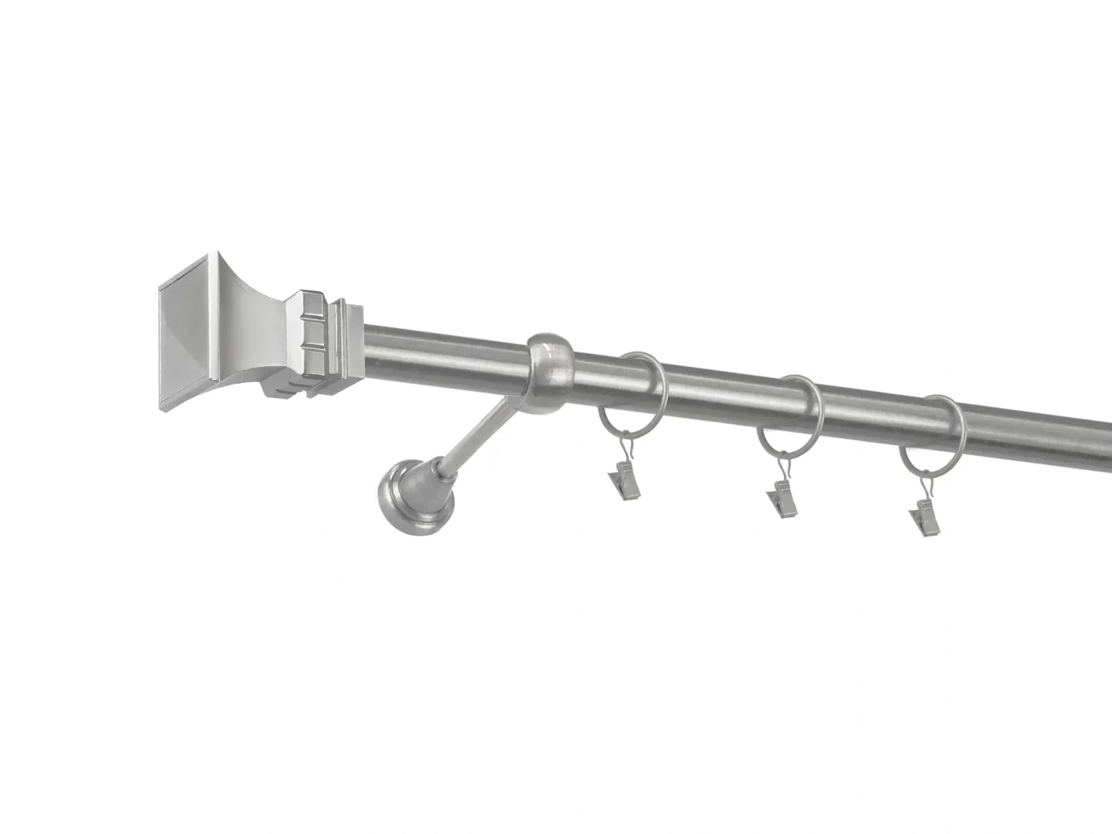 • Dĺžka 1600 mm - tyč 25mm - 1600mm - 1ks, držiak - 2ks, koncovka - 2ks, krúžok so štipcom - 15ks (pri výbere parametra príslušenstvo s krúžkami so štipcom), skrutky a hmoždinky na montáž