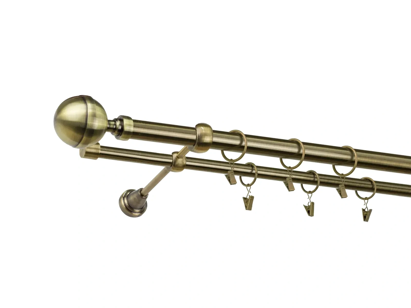 • Dĺžka 3200 mm - tyč 25mm - 1600mm - 2ks,  tyč 16mm - 1600mm - 2ks, spojka tyče – 2 ks, držiak dvojitý - 3ks, koncovka - 2ks, koncovka zadná (PULLO) - 2ks, krúžok so štipcom - 60ks (pri výbere parametra príslušenstvo s krúžkami so štipcom), skrutky a hmoždinky na montáž