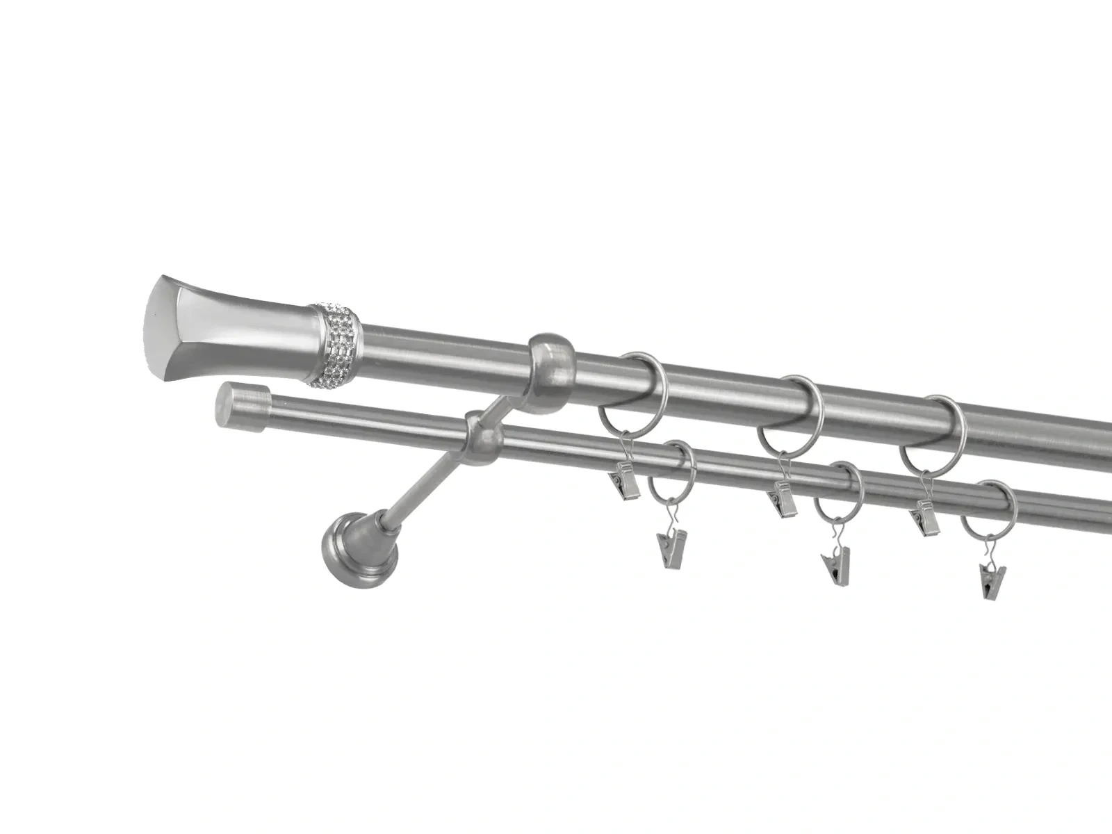 • Dĺžka 3000 mm - tyč 25mm - 3000mm - 1ks,  tyč 16mm - 3000mm - 1ks, držiak dvojitý - 3ks, koncovka - 2ks, koncovka zadná (PULLO) - 2ks, krúžok so štipcom - 56ks (pri výbere parametra príslušenstvo s krúžkami so štipcom), skrutky a hmoždinky na montáž