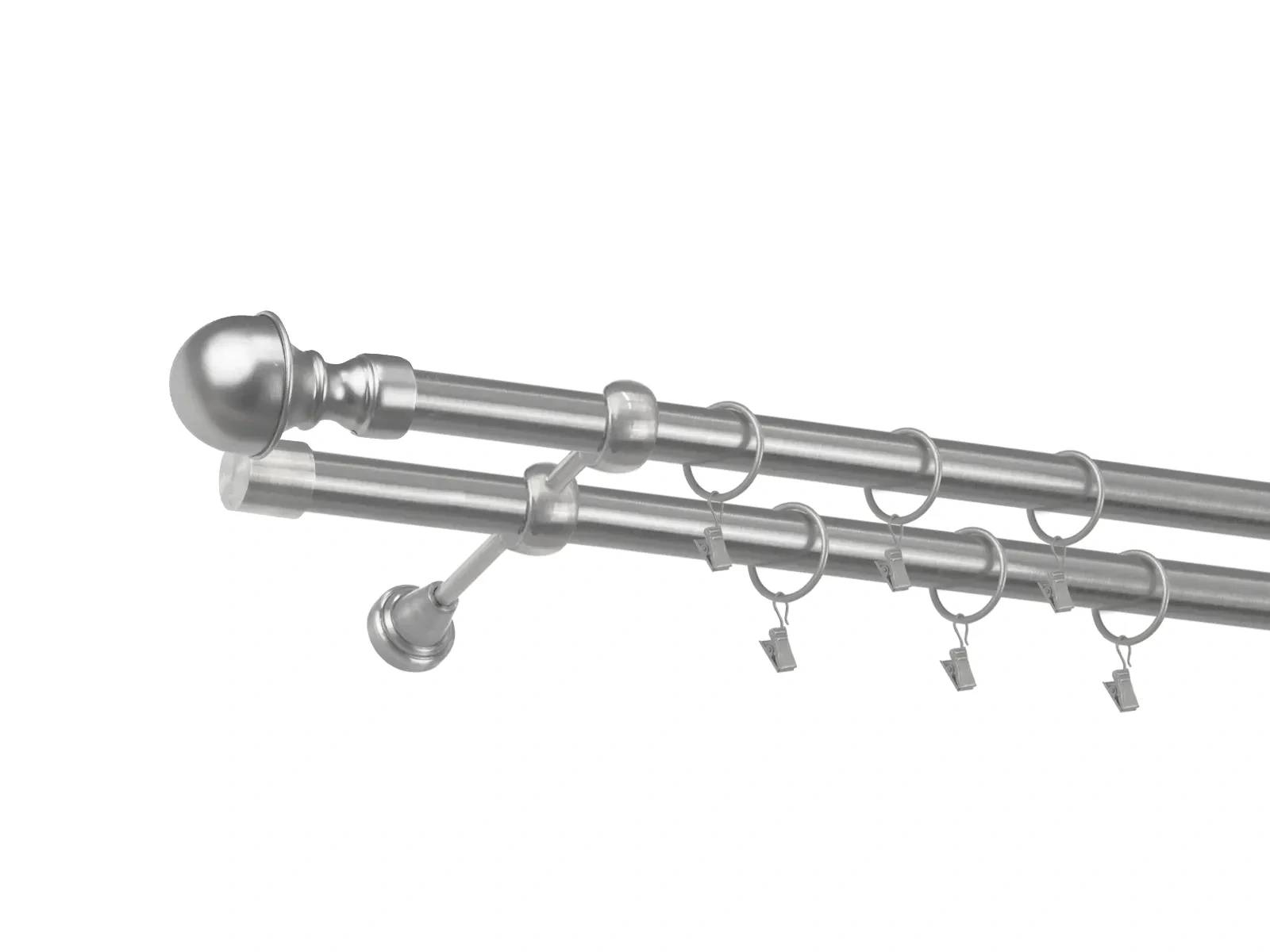 • Dĺžka 4400 mm - tyč 25mm - 2200mm - 4ks, spojka tyče – 2 ks, držiak dvojitý - 3ks, koncovka - 2ks, koncovka zadná (PULLO) - 2ks, krúžok so štipcom - 84ks (pri výbere parametra príslušenstvo s krúžkami so štipcom), skrutky a hmoždinky na montáž