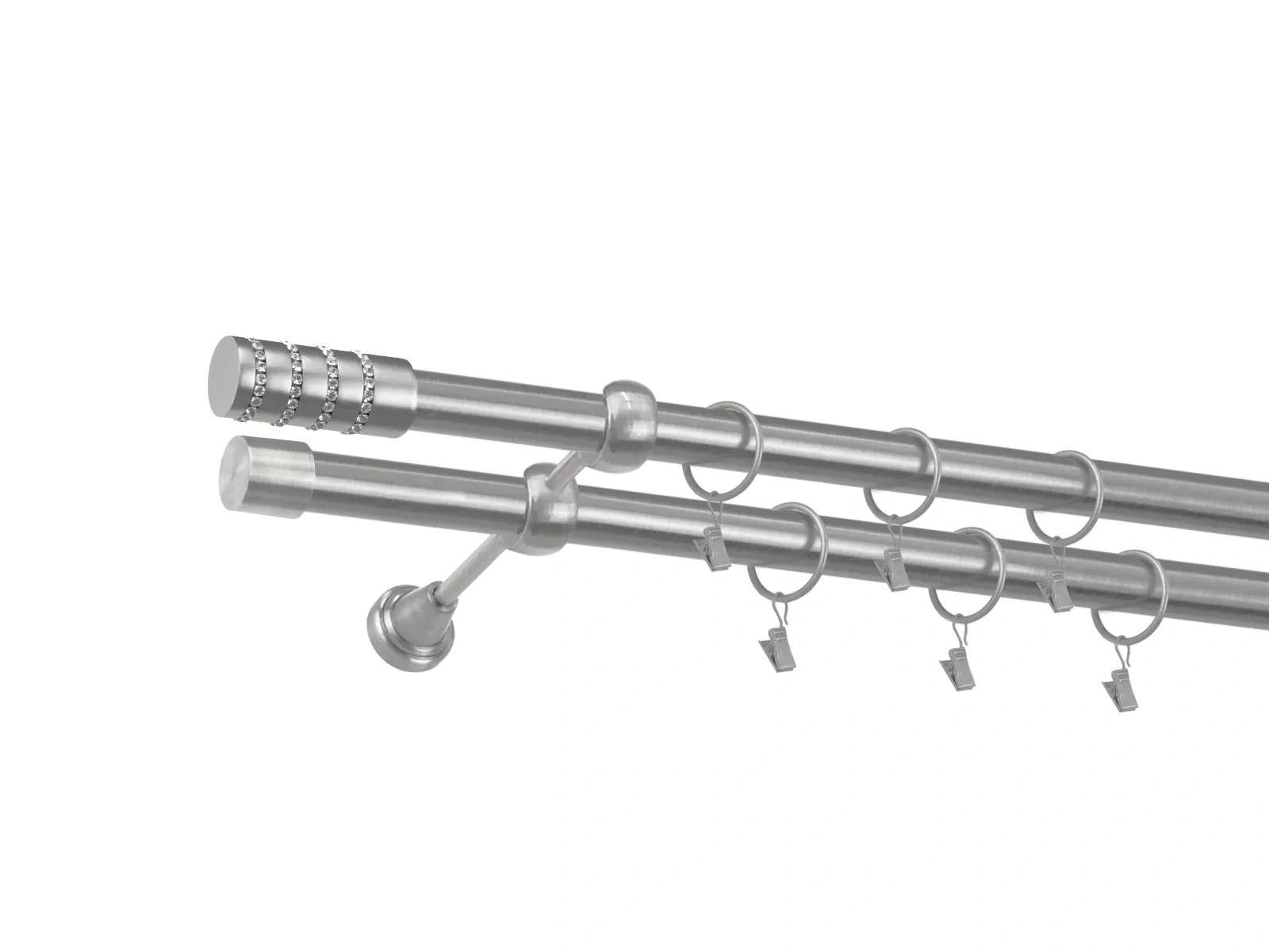• Dĺžka 2000 mm - tyč 25mm - 2000mm - 2ks, držiak dvojitý - 2ks, koncovka - 2ks, koncovka zadná (PULLO) - 2ks, krúžok so štipcom - 38ks (pri výbere parametra príslušenstvo s krúžkami so štipcom), skrutky a hmoždinky na montáž