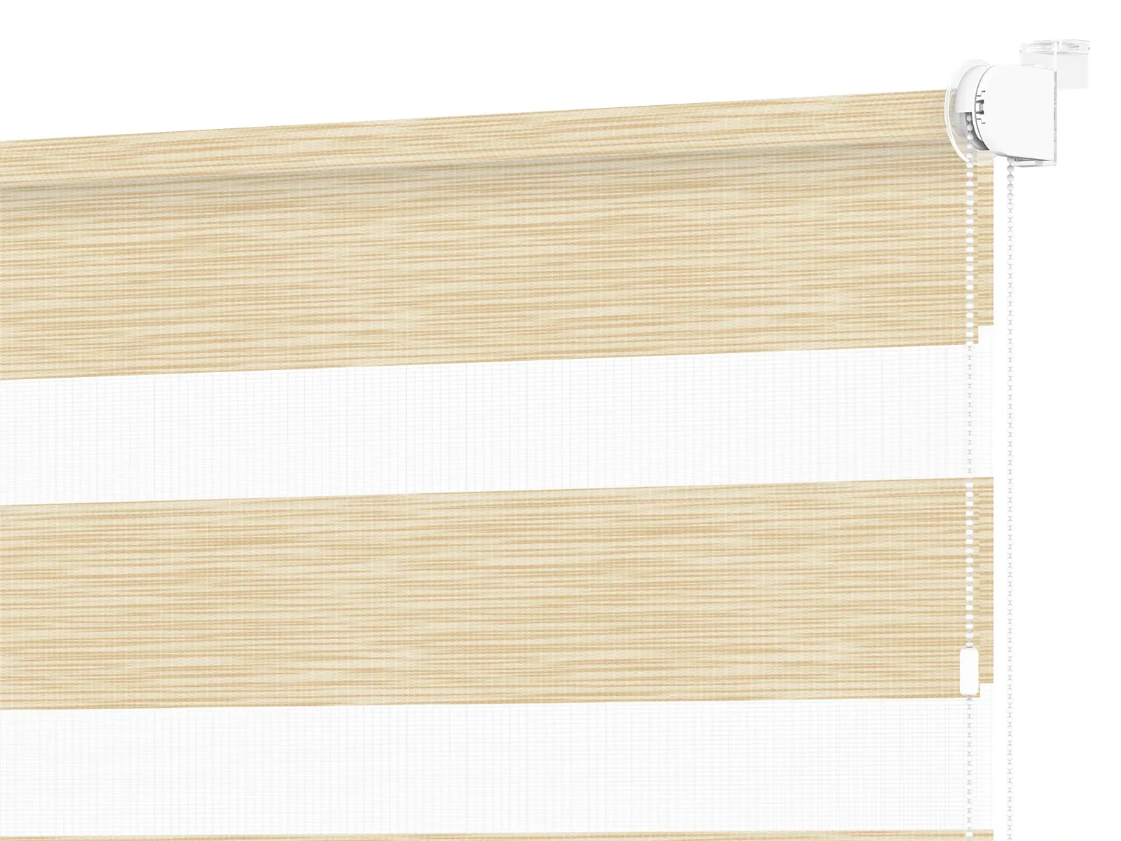 Látka Deň a noc Maurícius patrí medzi najpredávanejšie látky vo svojej kategórií, a to najmä vďaka skvelému pomeru ceny, kvality a dizajnu. Je obľúbenou voľbou pre zákazníkov, ktorí hľadajú praktické, estetické a zároveň cenovo dostupné riešenie pre tienenie interiéru. Jedinečným znakom látky Maurícius je jej dekoratívny vzor, ktorý pripomína štruktúru dreva. Tento efekt dodáva roletám prirodzený, elegantný a teplý vzhľad, vďaka čomu sa perfektne hodia do moderných aj klasických interiérov. Látka tak okrem svojej funkčnosti plní aj významnú estetickú úlohu, čím dokáže oživiť každý priestor. Z technického hľadiska ide o hrubšie tkanú látku – jej hrúbka je približne o 0,4mm väčšia než pri bežných typoch látok deň a noc. Táto vlastnosť zaručuje vyššiu hustotu materiálu, vďaka čomu látka pri úplnom zatiahnutí prepúšťa len minimálne množstvo svetla. To z nej robí ideálnu voľbu pre miestnosti, kde je žiadané väčšie zatienenie a súkromie.