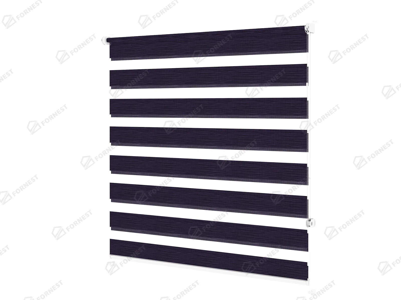 Roleta MINI - deň a noc - látka Maurícius 68 - tmavo fialová (čierny dekor)