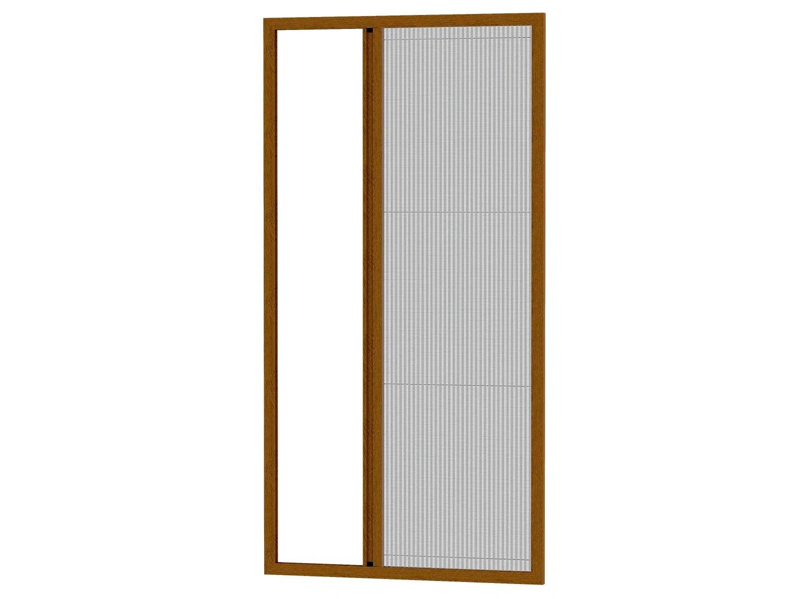 Použitý typ sieťoviny je Glass Fiber – kvalitná plisovaná, sklolaminátová sieťovina. Napínanie sieťoviny je riešené pomocou napínača umiestneného priamo v profile kedy jednoduchým posunutím bez potreby demontáže výrobku sieťovinu napnete. Výrobok je dodávaný kompletne zložený a pripravený na montáž (nie je to demont). Sieť je možné jednoducho namontovať buď pomocou obojstrannej lepiacej pásky, alebo priskrutkovaním do rámu dverí.
