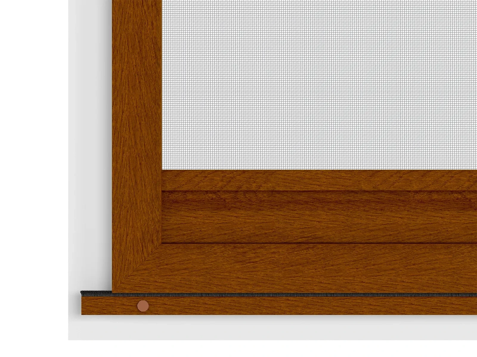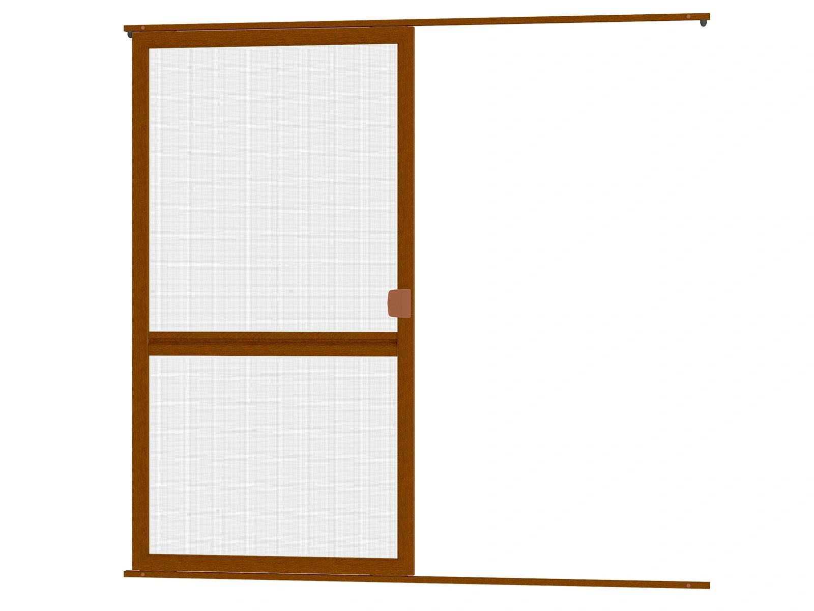 Posuvné sieťové dvere. Ľahký a plynulý posuv, vďaka kefkovému tesneniu.