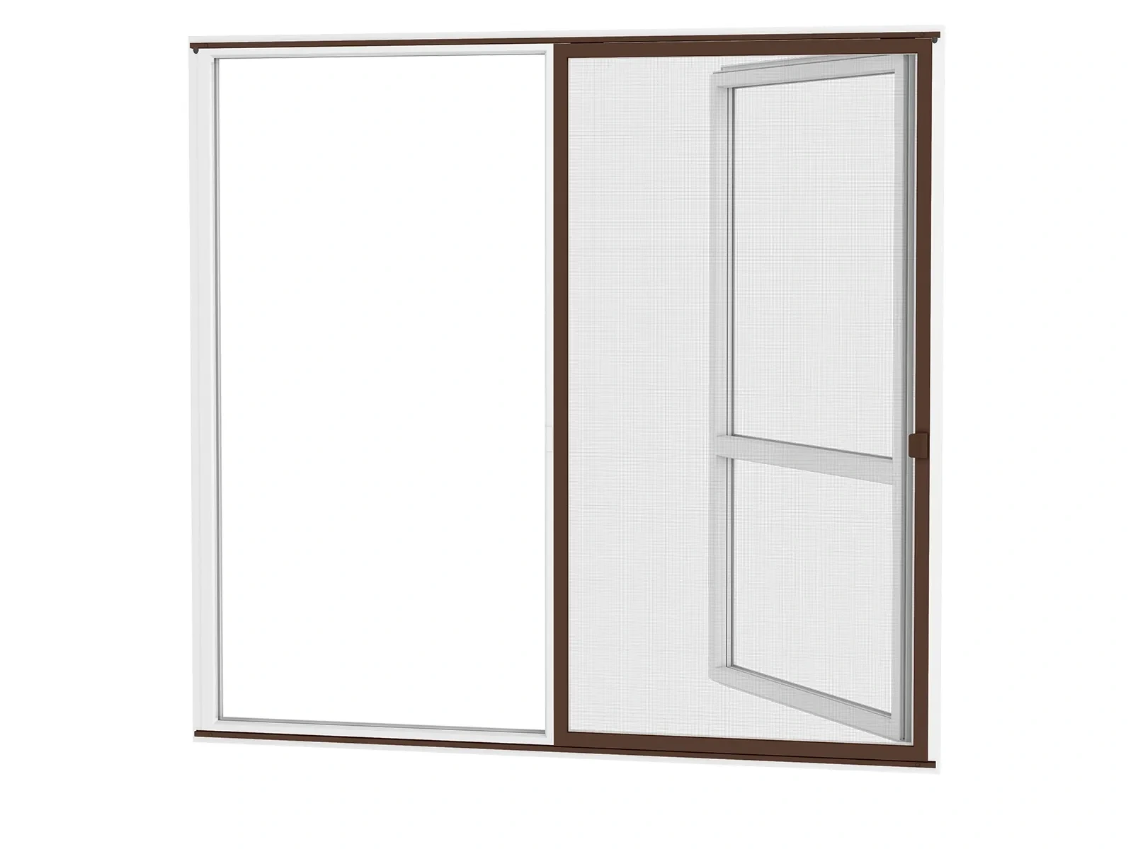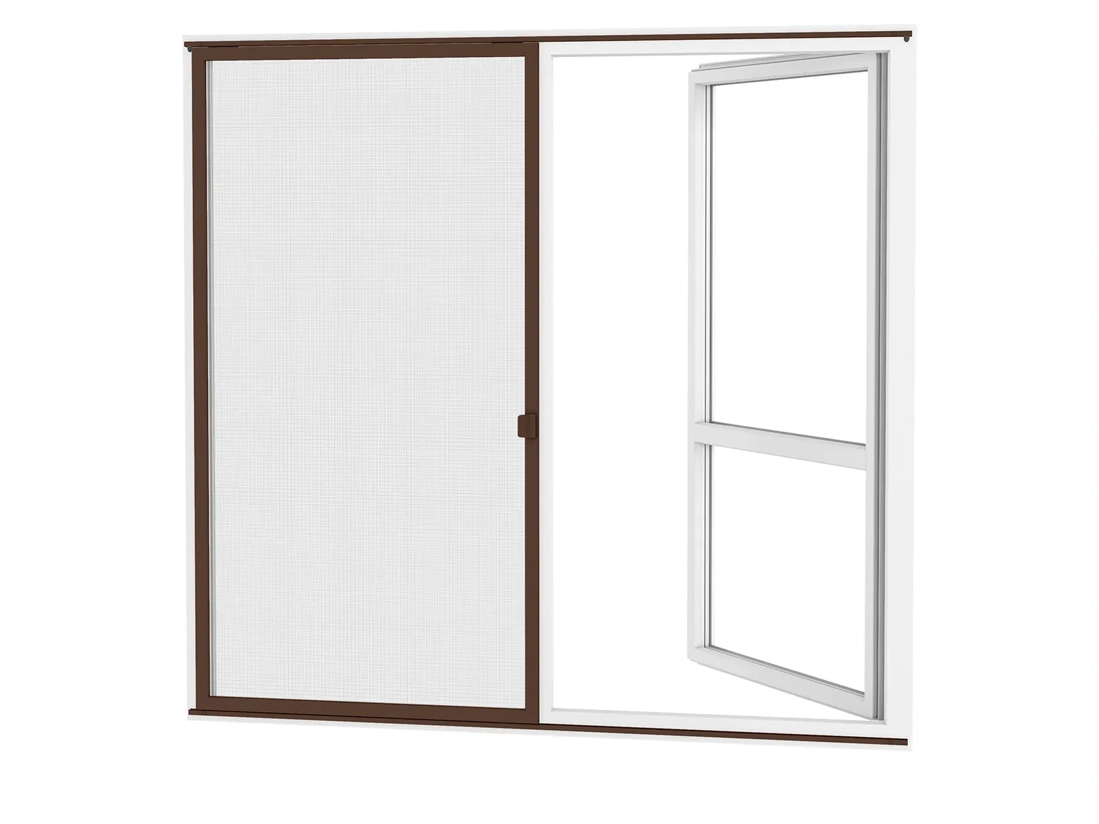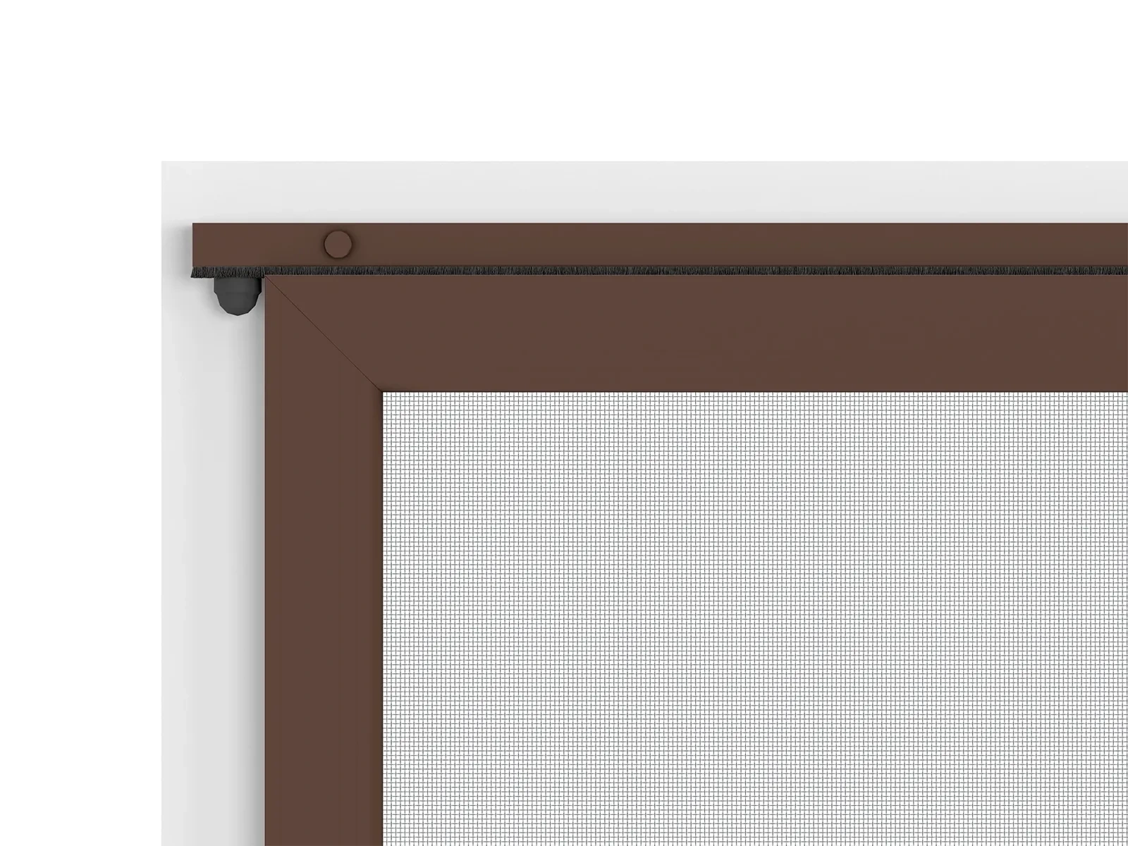 Posuvné sieťové dvere. Ľahký a plynulý posuv, vďaka kefkovému tesneniu.