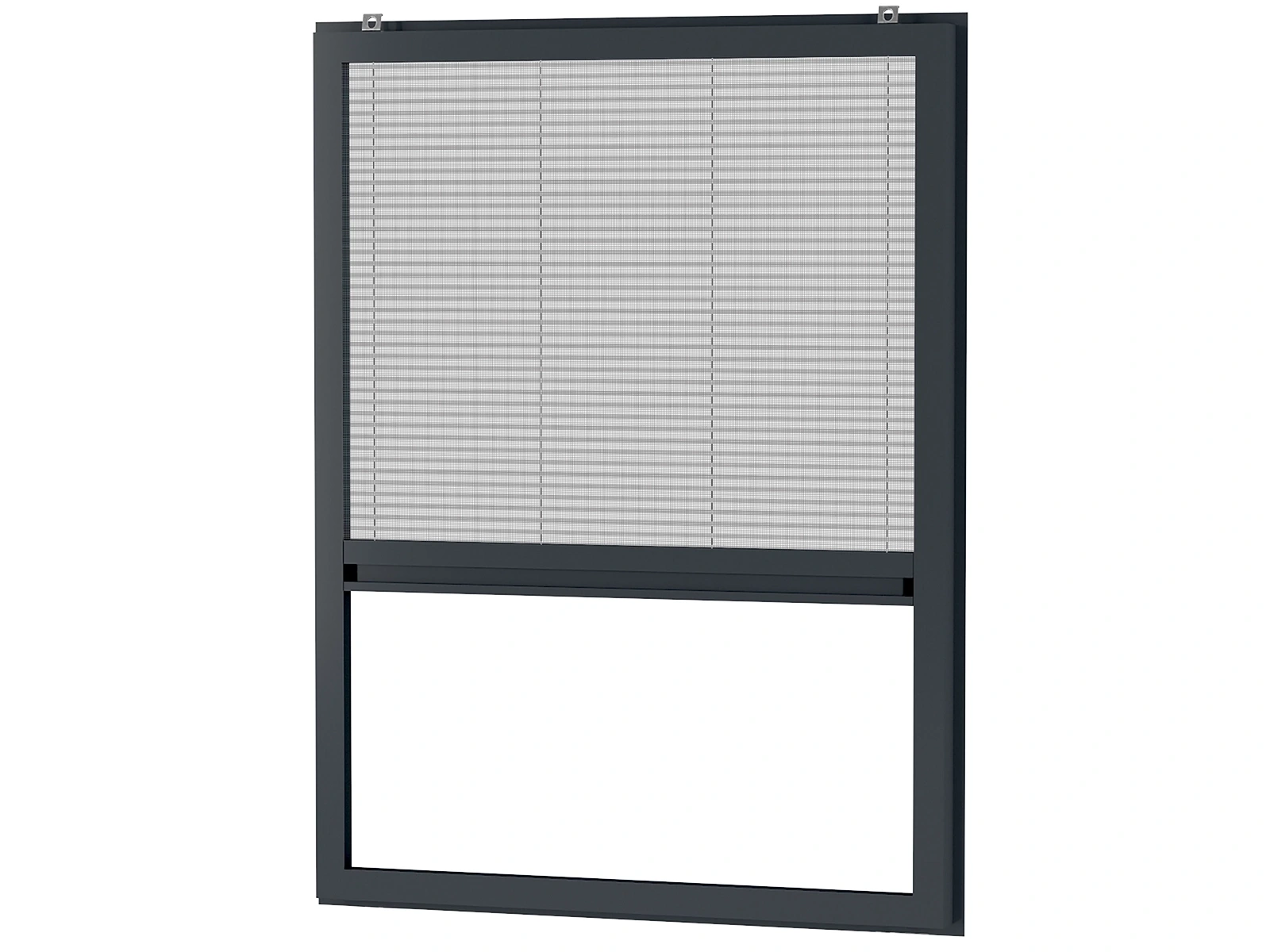 Sieťky proti hmyzu na OKNO - PLISÉ KLIK. Profily sú rezané pod 45° uhlom. Rohový spájač je vo vnútri profilu a teda pohľadovo neviditeľný. Napínanie je riešené pomocou napínača umiestneného v profile jednoduchým posunutím bez potreby demontáže výrobku.