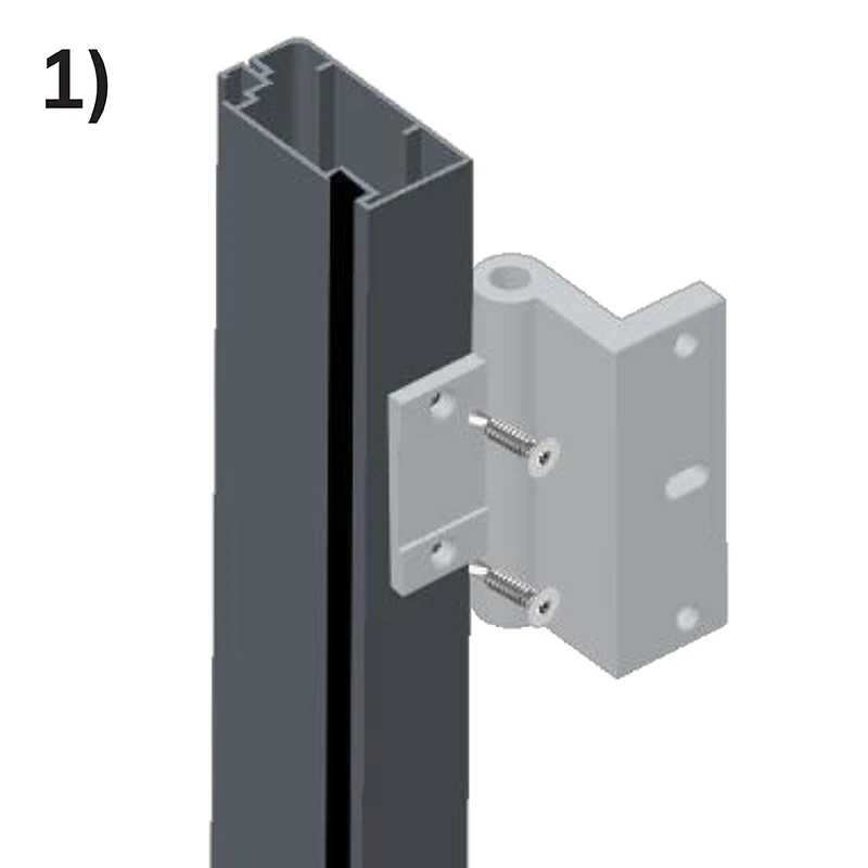Ha nem rendelte meg a terméket előre felszerelt zsanérokkal, meg kell határozni azok helyét. Azon az oldalon, ahol a zsanérok lesznek, csavarozza fel őket a háló szélétől 200 mm távolságra. Ha három zsanért választott, a harmadikat a háló magasságának közepére helyezze.