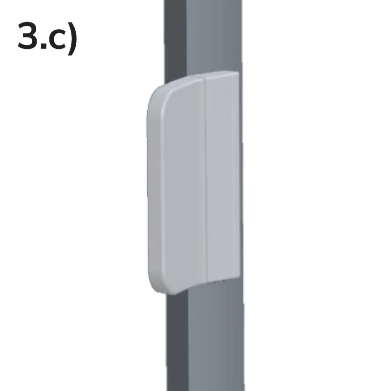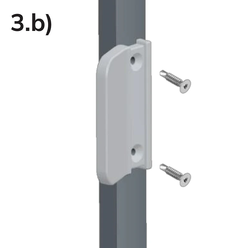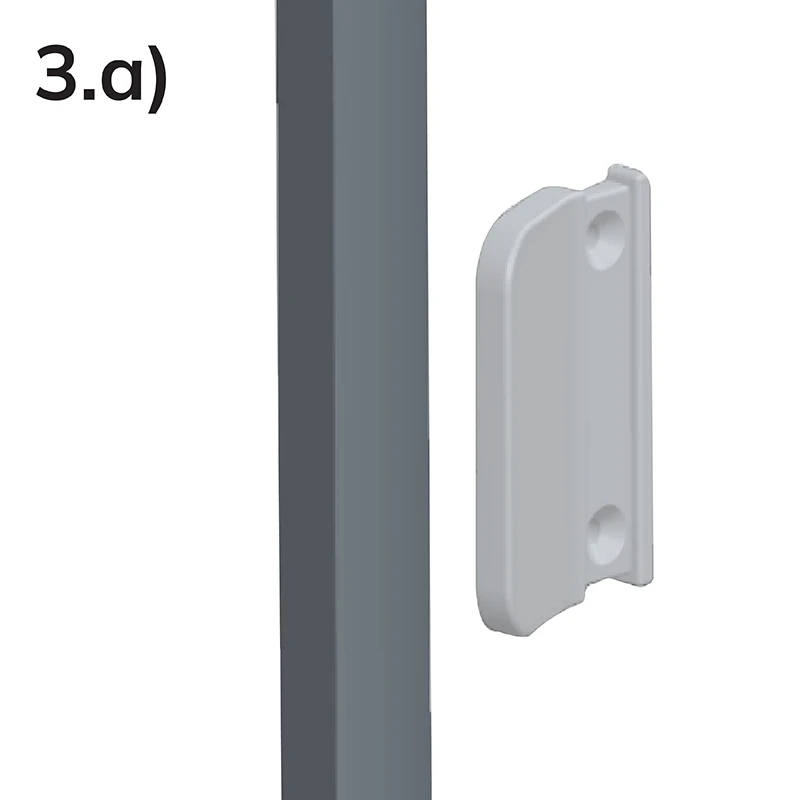 Szükség esetén a háló keretére fogantyút is felszerelhet. Távolítsa el a csavarok fedelét, határozza meg a kívánt magasságot, majd rögzítse a fogantyút a mellékelt TEX csavarokkal. Végül pattintsa vissza a fedelet.